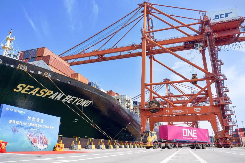 目前,海洋网联船务(ONE)AP1航线正式启航,ONE与招商局港口(华南)营运中心,在深圳蛇口港共同举办了AP1航线首航仪式。新航线将连接亚洲和美国西海岸,为客户提供更灵活、更多元的服务。